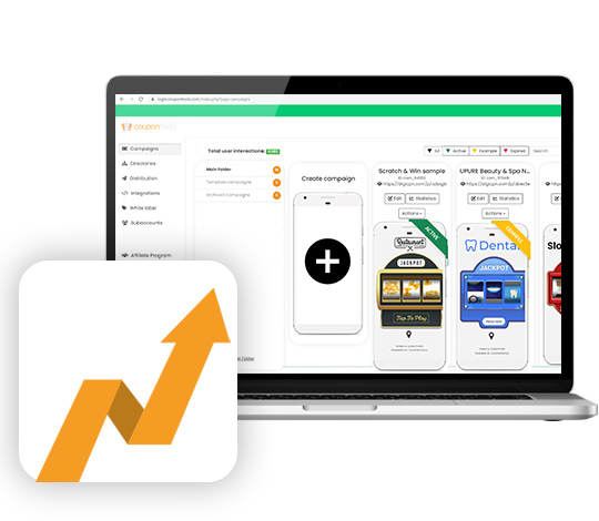 Vos campagnes Coupontools sont adaptées aux mobiles, basées sur le web et peuvent être intégrées dans des campagnes e-mail/SMS, des fenêtres contextuelles, des sites web, des codes QR et des pages sur les réseaux sociaux.